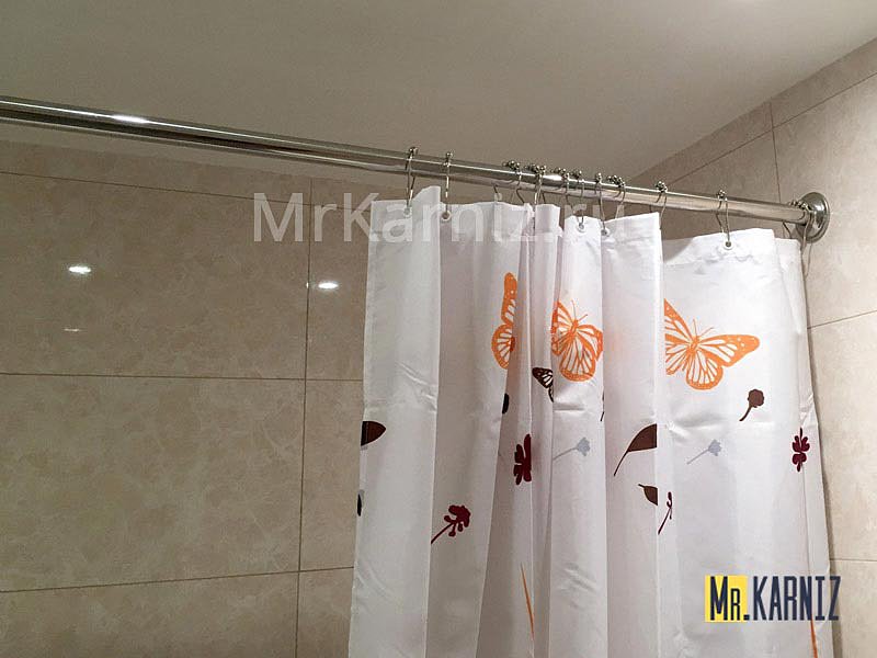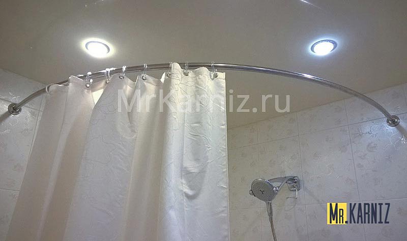 Каждая такая штанга в точности повторяет конфигурацию поддонов (ванн). Благодаря карнизам с нанизанными на кольца шторками душевая смотрится элегантно, создается единая законченная композиция.