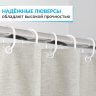 Тканевая шторка снабжена утяжелителем и люверсами из нержавеющей стали. Также в комплекте с занавеской поставляется 16 пластиковых колец.